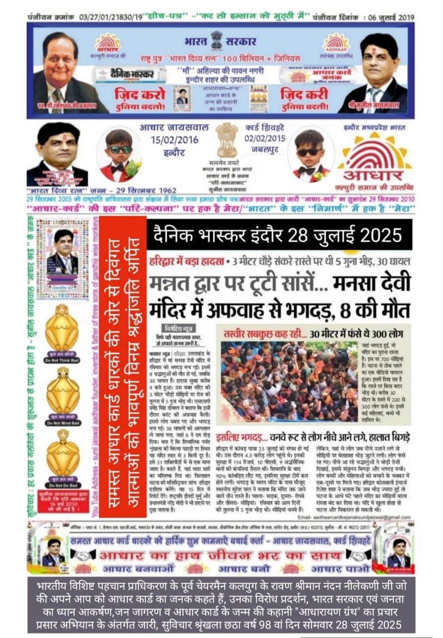 प्रयागराज महाकुम्भ 2024-25 में दिवगंत आत्माओं को आधार कार्ड के जनक सुनील जायसवाल इंदौर एवं समस्त आधार कार्ड धारकों की…